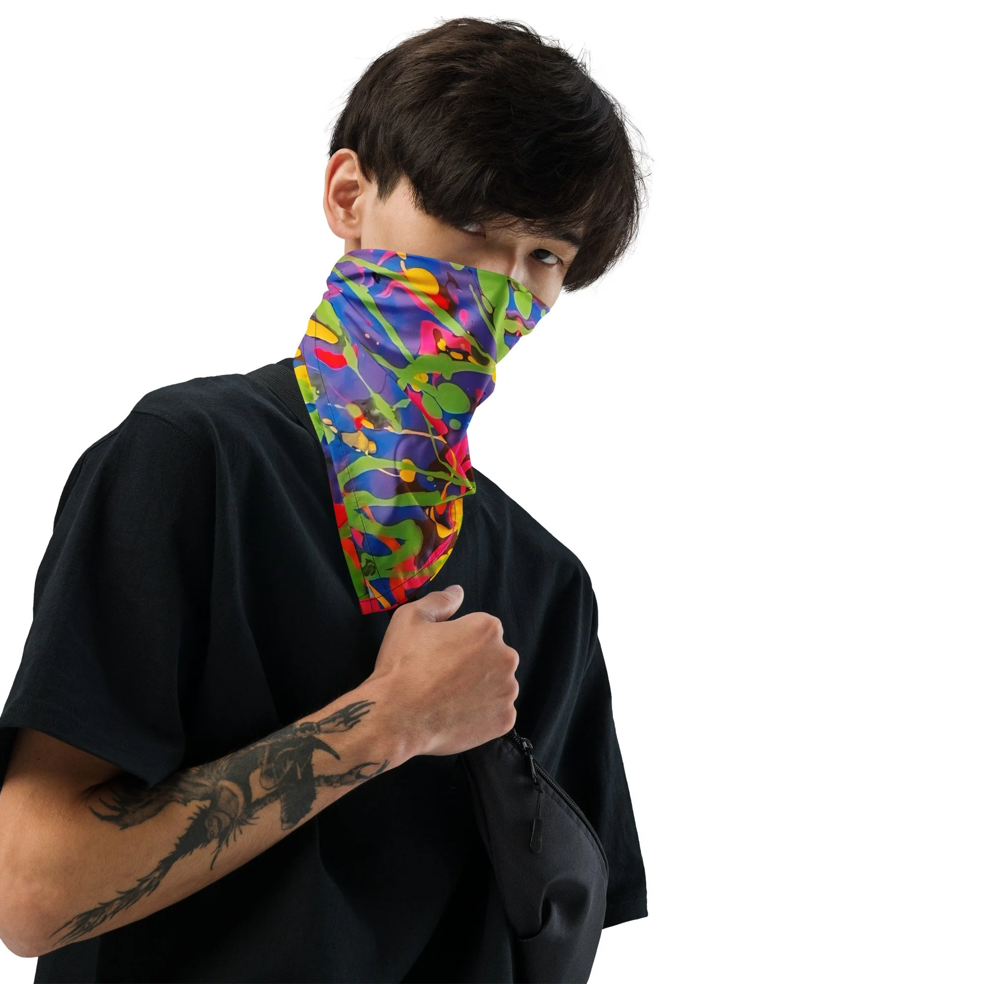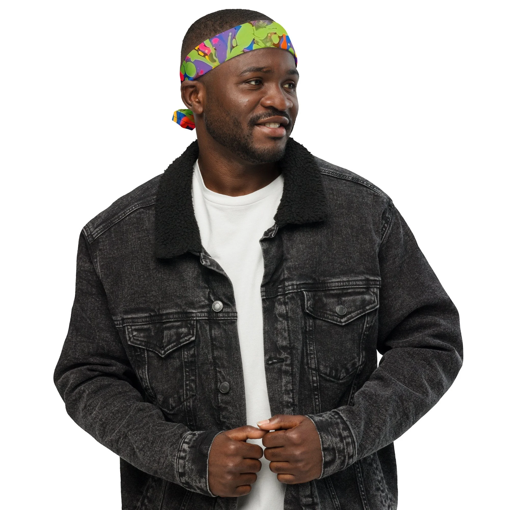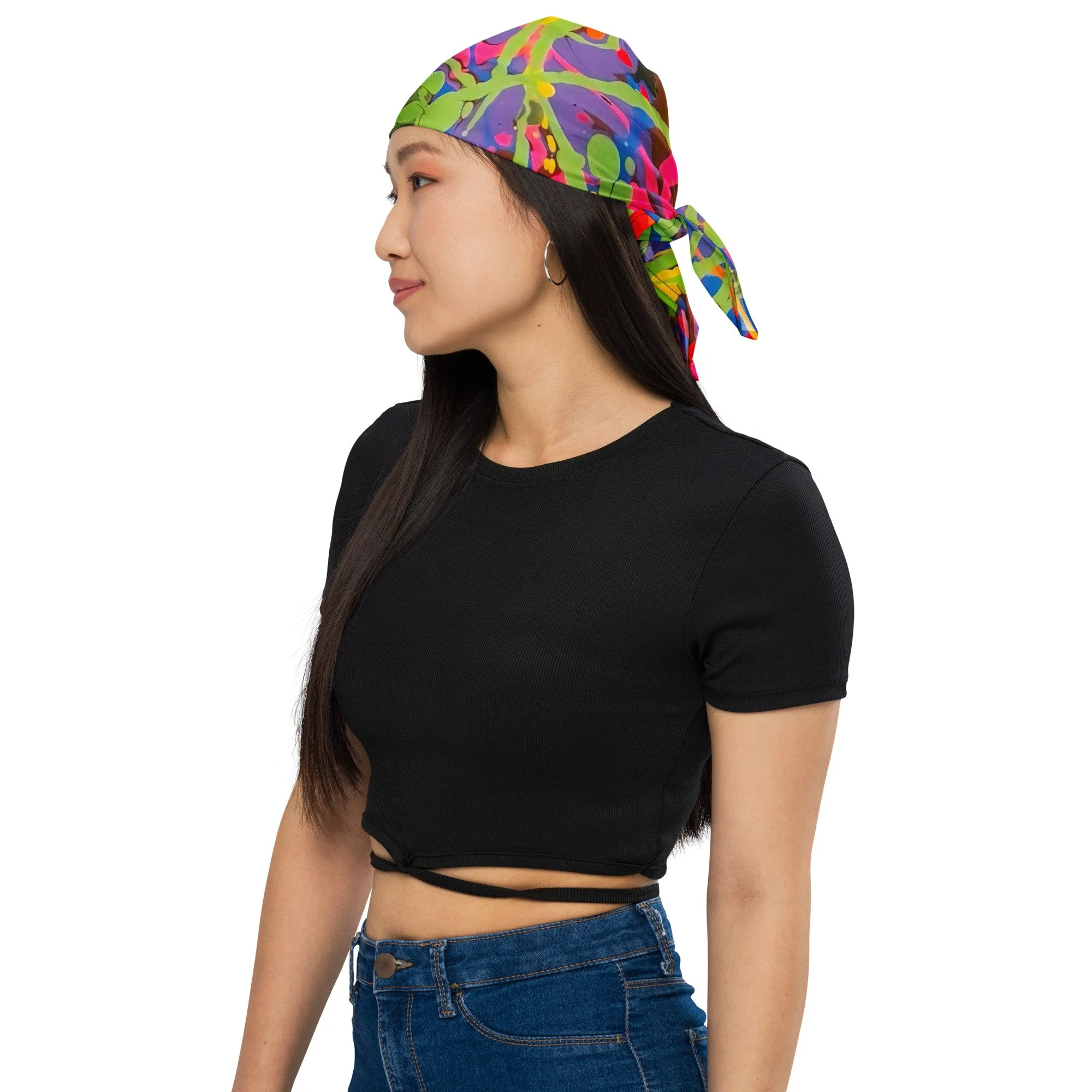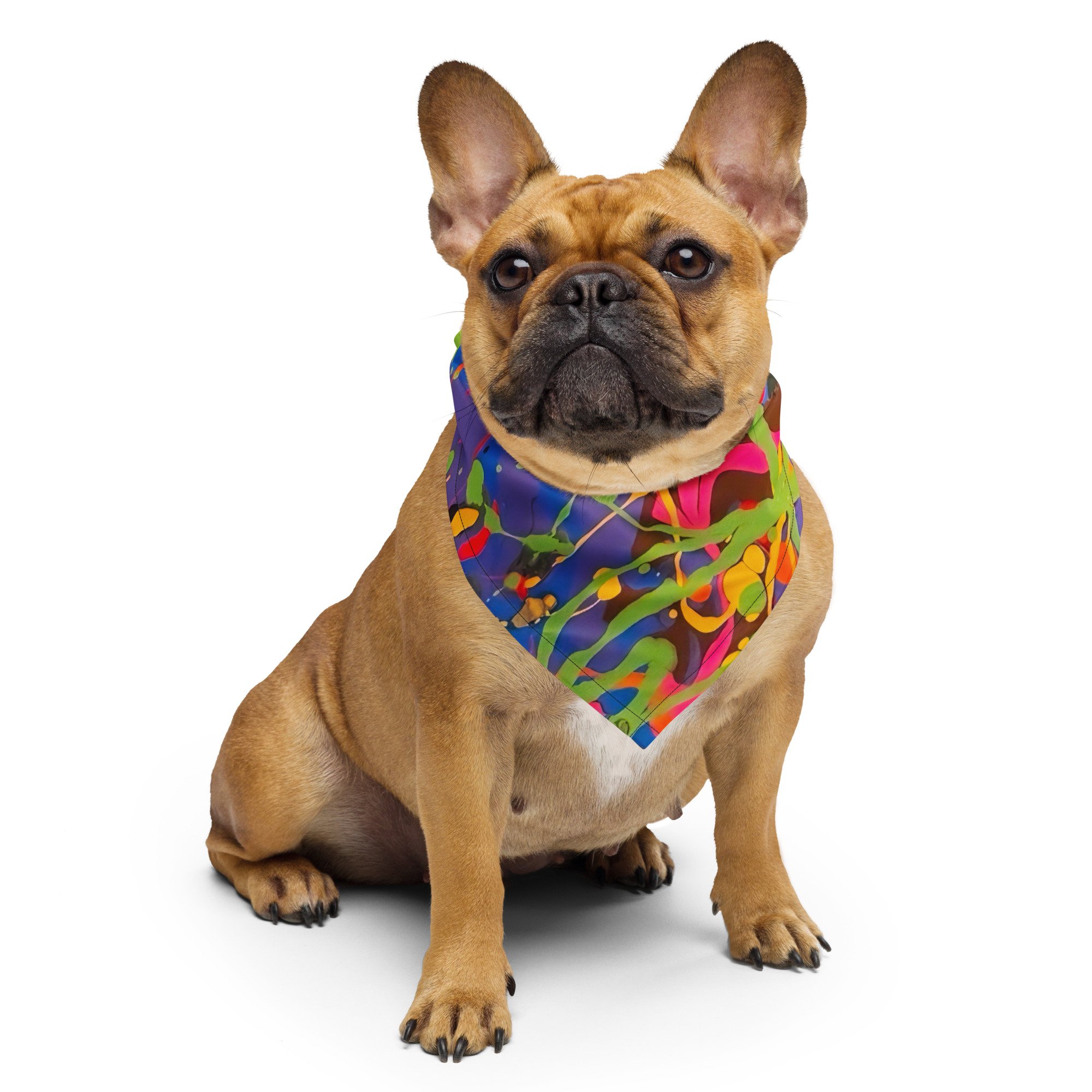Get ready to make a statement with this all-over print bandana. Mix up your outfits by using this as a headband, necktie, or armband. In fact, why not get a second bandana to match your pet? Grab a few and hit the streets in style!