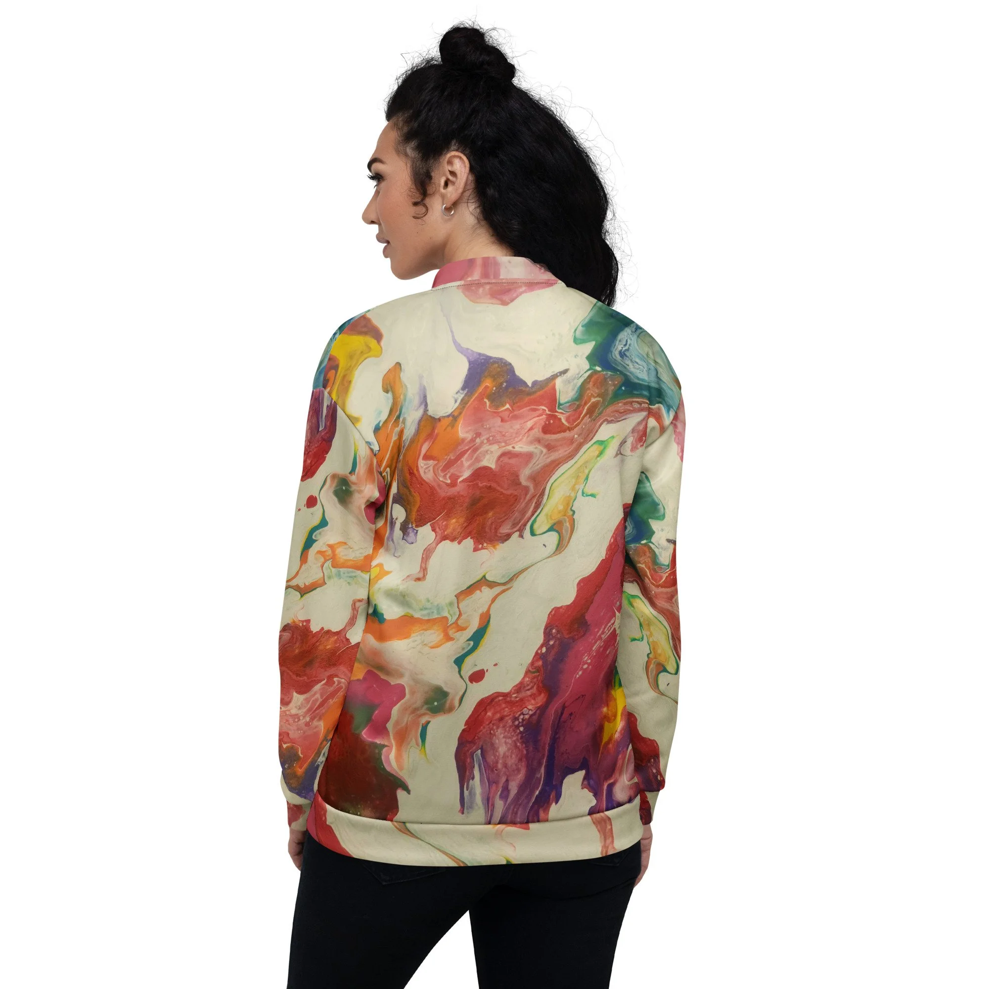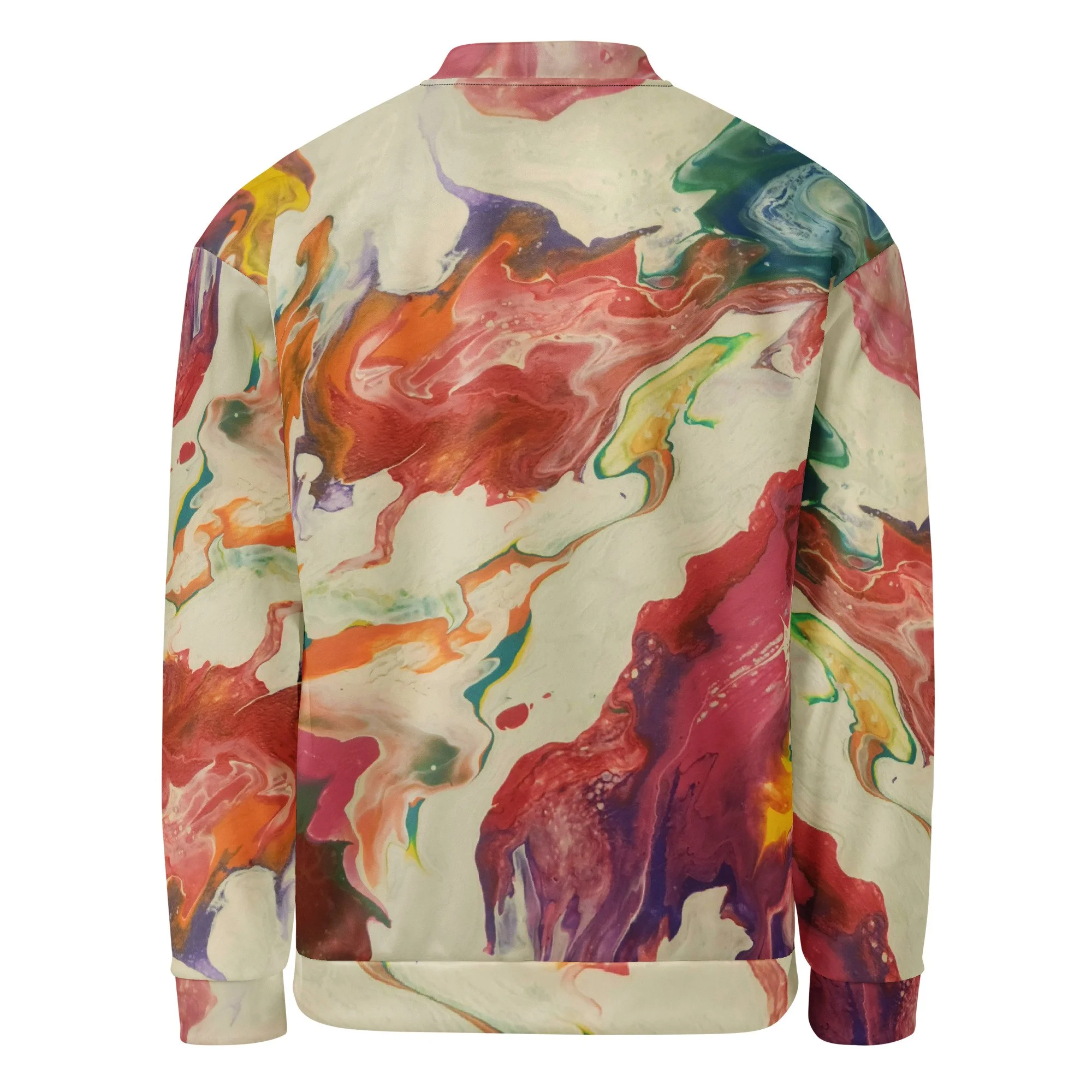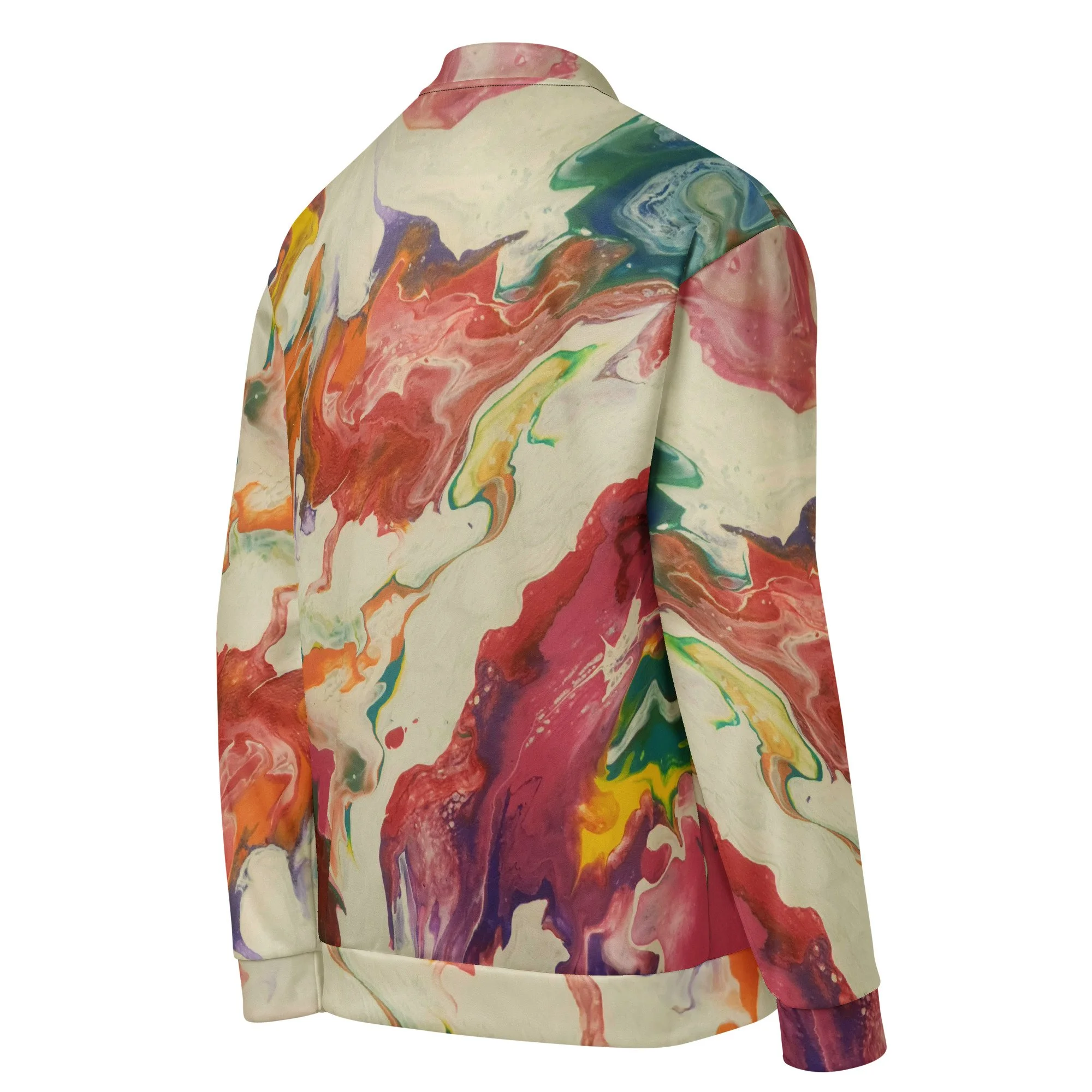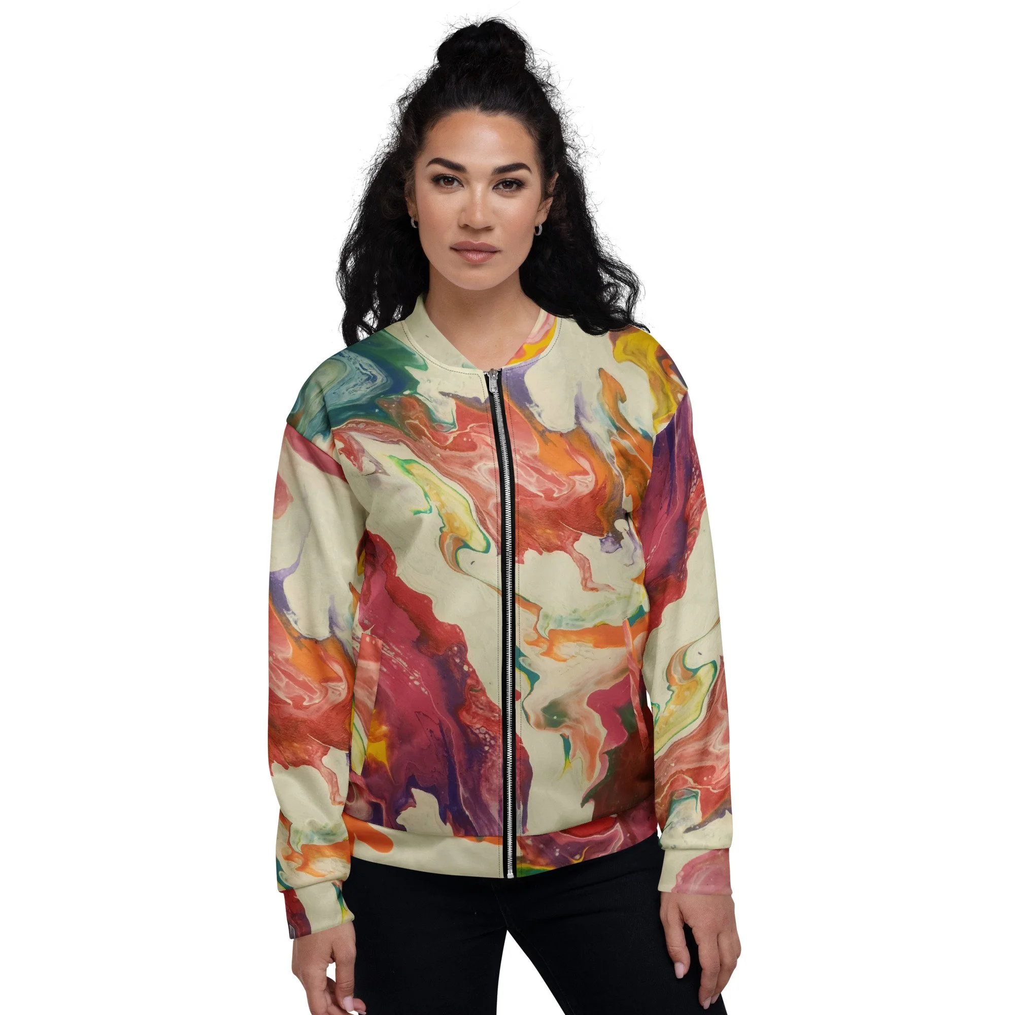 Add a little zing to your wardrobe with this vibrant All-Over Print Bomber Jacket. Wear it on a basic t-shirt, or layer it on top of a warm hoodie—it’ll look great either way. With a brushed fleece inside, and a relaxed unisex fit, this Bomber Jacket is just the stuff of the dreams, so be quick to grab yourself one!